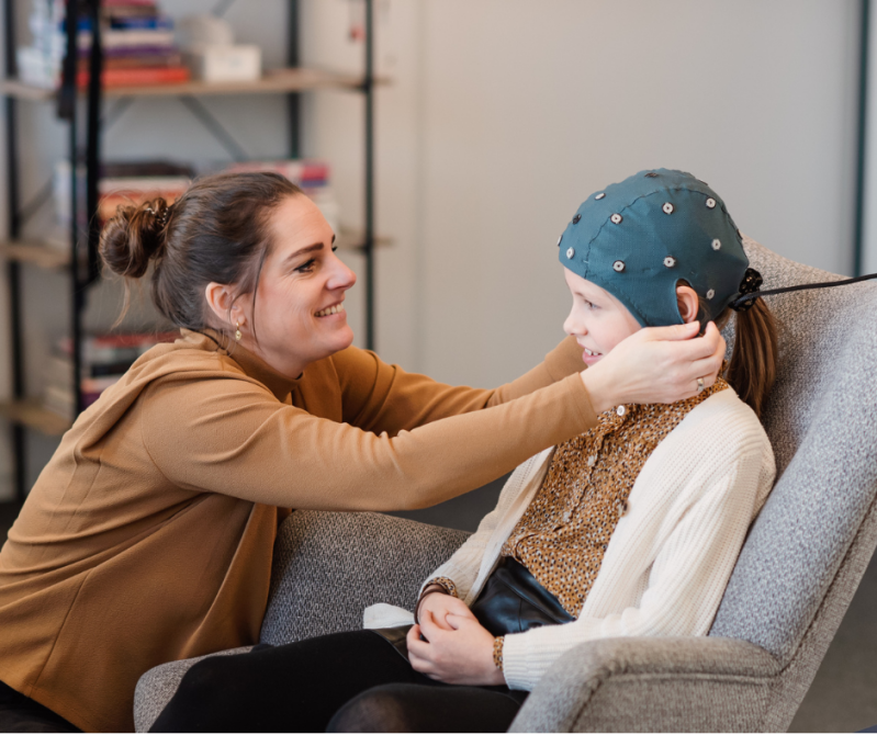Met neurofeedback meten we de hersenactiviteit, stimuleren we netwerken in het brein door te oefenen en trainen we de hersenen via beloning. Die training helpt de hersenen om terug te keren in de rustige en geconcentreerde toestand die in sommige situaties gewenst is.